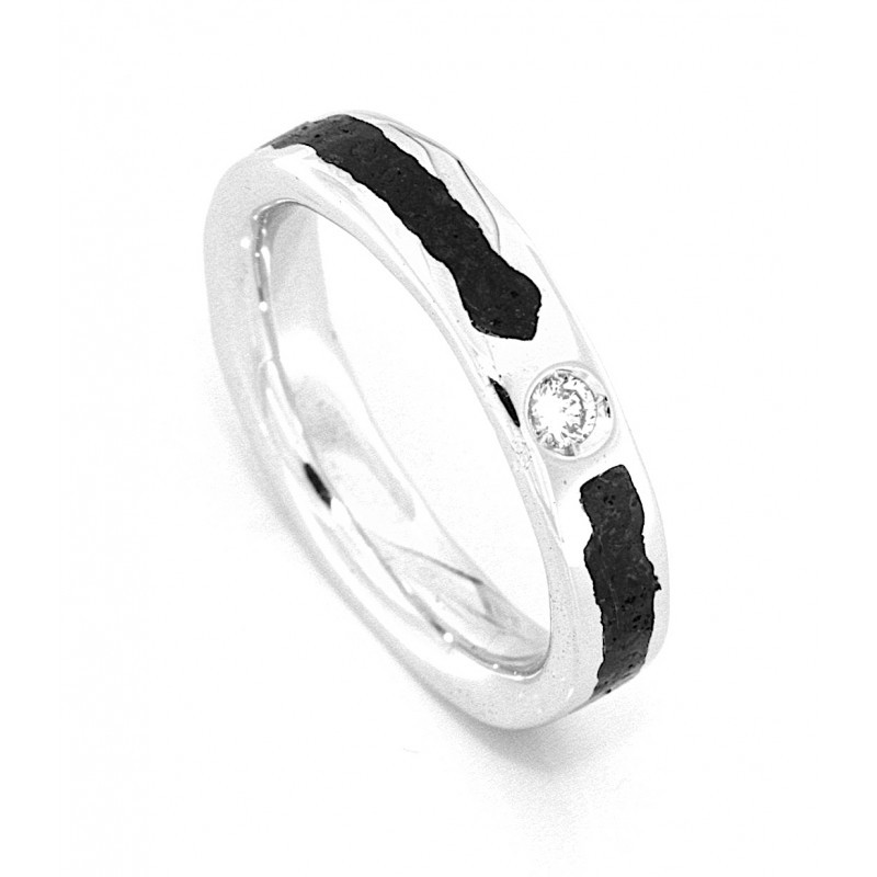 La fede è interamente realizzata a mano, il profilo tra la lava e il metallo è irregolare, per questo motivo l'anello acquistato non è uguale alla foto pubblicata, ogni qual volta viene realizzata la fusione il metallo avvolge la lava in modo diverso.
