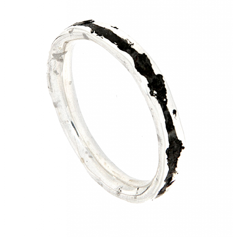 La fede è interamente realizzata a mano, il profilo tra la lava e il metallo è irregolare, per questo motivo l'anello acquistato non è uguale alla foto pubblicata, ogni qual volta viene realizzata la fusione il metallo avvolge la lava in modo diverso.